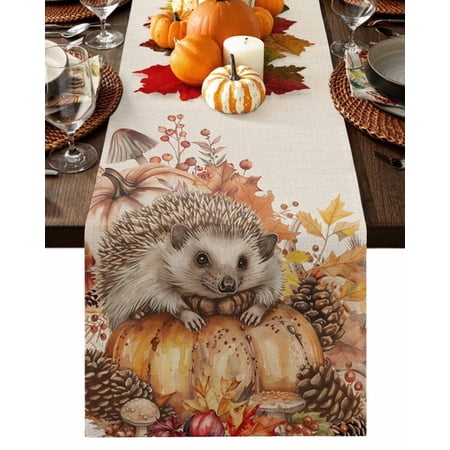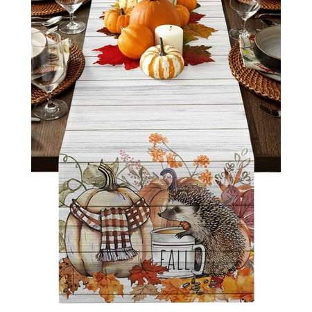1943. Table Runner Dresser Scarves 48 Inch Long Fall Thanksgiving Pumpkin Hedgehog Linen Dining Table Runners Pine Cone Maple Leaves On Flax Tabletop Scarf For Wedding Holiday Party Kitchen : Walmart-Kitchenware WHY CHOOSE OUR TABLE RUNNER DRESSER SCARVES? Multiple Sizes Dresser Scarves: There are many sizes table scarf for you to choose. Whether it is a round square or rectangular table our table runner are applicable. Durable Tabletop Cover: With the burlap cotton fabric and high density textile the linen tablecloth scarf will last a long life. High Color Fastness Runner for Table: Our tabletop runners for coffee table adopt modern high-tech printing technology which makes the pattern clear and colorfast. Easy Store: The lightweight and moderate thickness features make table top scarf easy to fold up and store when not in use. WHEN TO USE THIS FUNNY TABLECLOTH? Home Decor: Our decorative table cover runners with various vivid pattern and bright color are very ideal for displaying on dining tables TV stand bedroom tables coffee tables shoe cabinet wedding events holiday party. Great Present: The personalized tabletop scarves are great and ideal gifts for housewarming Halloween Christmas Thanksgiving Valentine’s Day Spring St.Patrick s Day Easter and New Year. DINING TABLE RUNNER INFORMATION Dresser Scarf Fabric: Burlap Linen Cotton Dresser Table Cloth Shape: Rectangular Table Scarf Runners Size: 13x70in/13x90in/14x72in/16x72in/18x72in/13x108in/13x120in/13x36in/13x72in/13x48in/13x60in Warm Tips Easy Care: Our table runner accents is machine washable gentle cycle. Please don t bleach. The table cover may be wrinkled due to long-distance transportation iron at low temperature and it will restore. After Sale: If you have any question about our table cloth scarf please don t hesitate to message us we will give you 100% satisfaction service. |