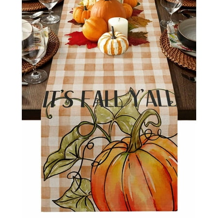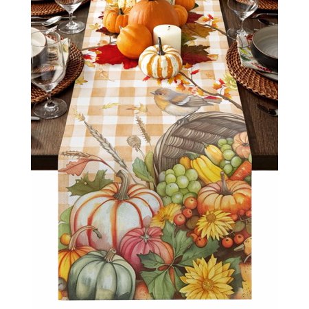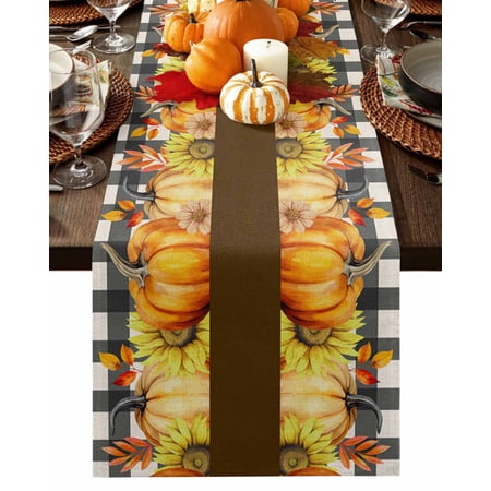 1916. Table Runner Dresser Scarves 120 Inch Long Thanksgiving Fall Pumpkin Maple Leaves Linen Dining Table Runners Autumn Orange White Checker Tabletop Scarf For Wedding Holiday Party Kitchen : Walmart-Kitchenware WHY CHOOSE OUR TABLE RUNNER DRESSER SCARVES? Multiple Sizes Dresser Scarves: There are many sizes table scarf for you to choose. Whether it is a round square or rectangular table our table runner are applicable. Durable Tabletop Cover: With the burlap cotton fabric and high density textile the linen tablecloth scarf will last a long life. High Color Fastness Runner for Table: Our tabletop runners for coffee table adopt modern high-tech printing technology which makes the pattern clear and colorfast. Easy Store: The lightweight and moderate thickness features make table top scarf easy to fold up and store when not in use. WHEN TO USE THIS FUNNY TABLECLOTH? Home Decor: Our decorative table cover runners with various vivid pattern and bright color are very ideal for displaying on dining tables TV stand bedroom tables coffee tables shoe cabinet wedding events holiday party. Great Present: The personalized tabletop scarves are great and ideal gifts for housewarming Halloween Christmas Thanksgiving Valentine’s Day Spring St.Patrick s Day Easter and New Year. DINING TABLE RUNNER INFORMATION Dresser Scarf Fabric: Burlap Linen Cotton Dresser Table Cloth Shape: Rectangular Table Scarf Runners Size: 13x70in/13x90in/14x72in/16x72in/18x72in/13x108in/13x120in/13x36in/13x72in/13x48in/13x60in Warm Tips Easy Care: Our table runner accents is machine washable gentle cycle. Please don t bleach. The table cover may be wrinkled due to long-distance transportation iron at low temperature and it will restore. After Sale: If you have any question about our table cloth scarf please don t hesitate to message us we will give you 100% satisfaction service. |