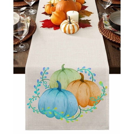 1910. Table Runner Dresser Scarves 90 Inch Long Fall Thanksgiving Watercolor Pumpkin Linen Dining Table Runners Autumn Harvest Wheat On Linen Tabletop Scarf For Wedding Holiday Party Kitchen : Walmart-Kitchenware WHY CHOOSE OUR TABLE RUNNER DRESSER SCARVES? Multiple Sizes Dresser Scarves: There are many sizes table scarf for you to choose. Whether it is a round square or rectangular table our table runner are applicable. Durable Tabletop Cover: With the burlap cotton fabric and high density textile the linen tablecloth scarf will last a long life. High Color Fastness Runner for Table: Our tabletop runners for coffee table adopt modern high-tech printing technology which makes the pattern clear and colorfast. Easy Store: The lightweight and moderate thickness features make table top scarf easy to fold up and store when not in use. WHEN TO USE THIS FUNNY TABLECLOTH? Home Decor: Our decorative table cover runners with various vivid pattern and bright color are very ideal for displaying on dining tables TV stand bedroom tables coffee tables shoe cabinet wedding events holiday party. Great Present: The personalized tabletop scarves are great and ideal gifts for housewarming Halloween Christmas Thanksgiving Valentine’s Day Spring St.Patrick s Day Easter and New Year. DINING TABLE RUNNER INFORMATION Dresser Scarf Fabric: Burlap Linen Cotton Dresser Table Cloth Shape: Rectangular Table Scarf Runners Size: 13x70in/13x90in/14x72in/16x72in/18x72in/13x108in/13x120in/13x36in/13x72in/13x48in/13x60in Warm Tips Easy Care: Our table runner accents is machine washable gentle cycle. Please don t bleach. The table cover may be wrinkled due to long-distance transportation iron at low temperature and it will restore. After Sale: If you have any question about our table cloth scarf please don t hesitate to message us we will give you 100% satisfaction service. |