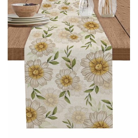 1081. Table Runner Dresser Scarves 120 Inch Long Blossom Daisy Flower Green Leaves Linen Dining Table Runners Botanical Foliage On Vintage Letter Tabletop Scarf For Wedding Holiday Party Kitchen : Walmart-Kitchenware WHY CHOOSE OUR TABLE RUNNER DRESSER SCARVES? Multiple Sizes Dresser Scarves: There are many sizes table scarf for you to choose. Whether it is a round square or rectangular table our table runner are applicable. Durable Tabletop Cover: With the burlap cotton fabric and high density textile the linen tablecloth scarf will last a long life. High Color Fastness Runner for Table: Our tabletop runners for coffee table adopt modern high-tech printing technology which makes the pattern clear and colorfast. Easy Store: The lightweight and moderate thickness features make table top scarf easy to fold up and store when not in use. WHEN TO USE THIS FUNNY TABLECLOTH? Home Decor: Our decorative table cover runners with various vivid pattern and bright color are very ideal for displaying on dining tables TV stand bedroom tables coffee tables shoe cabinet wedding events holiday party. Great Present: The personalized tabletop scarves are great and ideal gifts for housewarming Halloween Christmas Thanksgiving Valentine’s Day Spring St.Patrick s Day Easter and New Year. DINING TABLE RUNNER INFORMATION Dresser Scarf Fabric: Burlap Linen Cotton Dresser Table Cloth Shape: Rectangular Table Scarf Runners Size: 13x70in/13x90in/14x72in/16x72in/18x72in/13x108in/13x120in/13x36in/13x72in/13x48in/13x60in Warm Tips Easy Care: Our table runner accents is machine washable gentle cycle. Please don t bleach. The table cover may be wrinkled due to long-distance transportation iron at low temperature and it will restore. After Sale: If you have any question about our table cloth scarf please don t hesitate to message us we will give you 100% satisfaction service. |