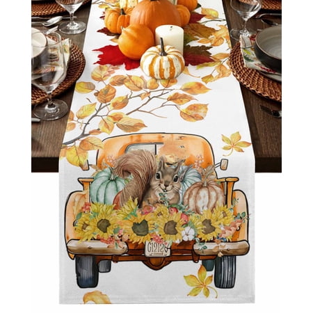 1913. Table Runner Dresser Scarves 72 Inch Long Thanksgiving Truck Sunflower Pumpkin Squirrel Linen Dining Table Runners Fall Leaves On White Tabletop Scarf For Wedding Holiday Party Kitchen : Walmart-Kitchenware WHY CHOOSE OUR TABLE RUNNER DRESSER SCARVES? Multiple Sizes Dresser Scarves: There are many sizes table scarf for you to choose. Whether it is a round square or rectangular table our table runner are applicable. Durable Tabletop Cover: With the burlap cotton fabric and high density textile the linen tablecloth scarf will last a long life. High Color Fastness Runner for Table: Our tabletop runners for coffee table adopt modern high-tech printing technology which makes the pattern clear and colorfast. Easy Store: The lightweight and moderate thickness features make table top scarf easy to fold up and store when not in use. WHEN TO USE THIS FUNNY TABLECLOTH? Home Decor: Our decorative table cover runners with various vivid pattern and bright color are very ideal for displaying on dining tables TV stand bedroom tables coffee tables shoe cabinet wedding events holiday party. Great Present: The personalized tabletop scarves are great and ideal gifts for housewarming Halloween Christmas Thanksgiving Valentine’s Day Spring St.Patrick s Day Easter and New Year. DINING TABLE RUNNER INFORMATION Dresser Scarf Fabric: Burlap Linen Cotton Dresser Table Cloth Shape: Rectangular Table Scarf Runners Size: 13x70in/13x90in/14x72in/16x72in/18x72in/13x108in/13x120in/13x36in/13x72in/13x48in/13x60in Warm Tips Easy Care: Our table runner accents is machine washable gentle cycle. Please don t bleach. The table cover may be wrinkled due to long-distance transportation iron at low temperature and it will restore. After Sale: If you have any question about our table cloth scarf please don t hesitate to message us we will give you 100% satisfaction service. |
