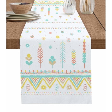 1030. Table Runner Dresser Scarves 120 Inch Long Watercolor Ethnic Aztec Triangle Linen Dining Table Runners Tribal Flower Tree On White Tabletop Scarf For Wedding Holiday Party Kitchen : Walmart-Kitchenware WHY CHOOSE OUR TABLE RUNNER DRESSER SCARVES? Multiple Sizes Dresser Scarves: There are many sizes table scarf for you to choose. Whether it is a round square or rectangular table our table runner are applicable. Durable Tabletop Cover: With the burlap cotton fabric and high density textile the linen tablecloth scarf will last a long life. High Color Fastness Runner for Table: Our tabletop runners for coffee table adopt modern high-tech printing technology which makes the pattern clear and colorfast. Easy Store: The lightweight and moderate thickness features make table top scarf easy to fold up and store when not in use. WHEN TO USE THIS FUNNY TABLECLOTH? Home Decor: Our decorative table cover runners with various vivid pattern and bright color are very ideal for displaying on dining tables TV stand bedroom tables coffee tables shoe cabinet wedding events holiday party. Great Present: The personalized tabletop scarves are great and ideal gifts for housewarming Halloween Christmas Thanksgiving Valentine’s Day Spring St.Patrick s Day Easter and New Year. DINING TABLE RUNNER INFORMATION Dresser Scarf Fabric: Burlap Linen Cotton Dresser Table Cloth Shape: Rectangular Table Scarf Runners Size: 13x70in/13x90in/14x72in/16x72in/18x72in/13x108in/13x120in/13x36in/13x72in/13x48in/13x60in Warm Tips Easy Care: Our table runner accents is machine washable gentle cycle. Please don t bleach. The table cover may be wrinkled due to long-distance transportation iron at low temperature and it will restore. After Sale: If you have any question about our table cloth scarf please don t hesitate to message us we will give you 100% satisfaction service. |