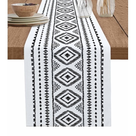 1080. Table Runner Dresser Scarves 108 Inch Long Vintage Rustic Boho Minimalist Art Linen Dining Table Runners Black Ethnic Texture On White Tabletop Scarf For Wedding Holiday Party Kitchen : Walmart-Kitchenware WHY CHOOSE OUR TABLE RUNNER DRESSER SCARVES? Multiple Sizes Dresser Scarves: There are many sizes table scarf for you to choose. Whether it is a round square or rectangular table our table runner are applicable. Durable Tabletop Cover: With the burlap cotton fabric and high density textile the linen tablecloth scarf will last a long life. High Color Fastness Runner for Table: Our tabletop runners for coffee table adopt modern high-tech printing technology which makes the pattern clear and colorfast. Easy Store: The lightweight and moderate thickness features make table top scarf easy to fold up and store when not in use. WHEN TO USE THIS FUNNY TABLECLOTH? Home Decor: Our decorative table cover runners with various vivid pattern and bright color are very ideal for displaying on dining tables TV stand bedroom tables coffee tables shoe cabinet wedding events holiday party. Great Present: The personalized tabletop scarves are great and ideal gifts for housewarming Halloween Christmas Thanksgiving Valentine’s Day Spring St.Patrick s Day Easter and New Year. DINING TABLE RUNNER INFORMATION Dresser Scarf Fabric: Burlap Linen Cotton Dresser Table Cloth Shape: Rectangular Table Scarf Runners Size: 13x70in/13x90in/14x72in/16x72in/18x72in/13x108in/13x120in/13x36in/13x72in/13x48in/13x60in Warm Tips Easy Care: Our table runner accents is machine washable gentle cycle. Please don t bleach. The table cover may be wrinkled due to long-distance transportation iron at low temperature and it will restore. After Sale: If you have any question about our table cloth scarf please don t hesitate to message us we will give you 100% satisfaction service. |