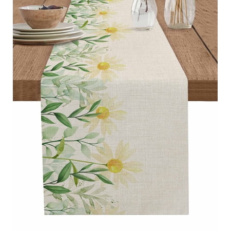 2094. Table Runner Dresser Scarves 120 Inch Long Blossom Daisy Flower Green Leaves Linen Dining Table Runners Seamless Floral On White Tabletop Scarf For Wedding Holiday Party Kitchen : Walmart-Kitchenware WHY CHOOSE OUR TABLE RUNNER DRESSER SCARVES? Multiple Sizes Dresser Scarves: There are many sizes table scarf for you to choose. Whether it is a round square or rectangular table our table runner are applicable. Durable Tabletop Cover: With the burlap cotton fabric and high density textile the linen tablecloth scarf will last a long life. High Color Fastness Runner for Table: Our tabletop runners for coffee table adopt modern high-tech printing technology which makes the pattern clear and colorfast. Easy Store: The lightweight and moderate thickness features make table top scarf easy to fold up and store when not in use. WHEN TO USE THIS FUNNY TABLECLOTH? Home Decor: Our decorative table cover runners with various vivid pattern and bright color are very ideal for displaying on dining tables TV stand bedroom tables coffee tables shoe cabinet wedding events holiday party. Great Present: The personalized tabletop scarves are great and ideal gifts for housewarming Halloween Christmas Thanksgiving Valentine’s Day Spring St.Patrick s Day Easter and New Year. DINING TABLE RUNNER INFORMATION Dresser Scarf Fabric: Burlap Linen Cotton Dresser Table Cloth Shape: Rectangular Table Scarf Runners Size: 13x70in/13x90in/14x72in/16x72in/18x72in/13x108in/13x120in/13x36in/13x72in/13x48in/13x60in Warm Tips Easy Care: Our table runner accents is machine washable gentle cycle. Please don t bleach. The table cover may be wrinkled due to long-distance transportation iron at low temperature and it will restore. After Sale: If you have any question about our table cloth scarf please don t hesitate to message us we will give you 100% satisfaction service. |