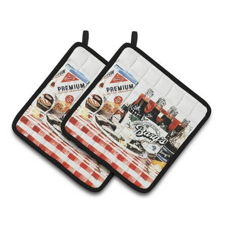 2941. Carolines Treasures 1004pthd Barqs Oysters Pair Of Pot Holders 7.5hx7.5w Multicolor : Walmart-Kitchenware Carolines Treasures 1004PTHD Barqs oysters Pair of Pot Holders 7.5HX7.5W multicolor Barqs oysters Pair of Pot Holders. A Pair of Pot Holders to match your kitchen decor. these are thick and functional. Full color artwork decorates the front polyester fabric of the hot pad and accented by a black trim. Use these at as a trivet for your Thanksgiving or Christmas tablescape. Filled with insulated fabric and quilted for durability. These colorful pot holders will make a great gift for your favorite home cook or executive chef. Each pot holder measures approximately 7 1/2 inches by 7 1/2 inches. A hanging tab is included. |